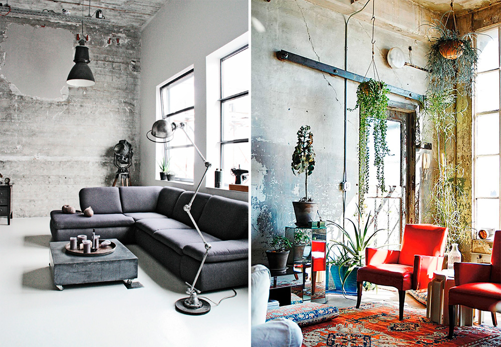 Лофтовые мотивы окунут в атмосферу промышленного дизайна.