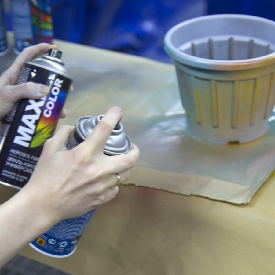 - При распылении красителя следует прикрыть пол и те части поверхности, которые не будут подвергаться декорированию. На предметах или стенах для защиты от излишнего распыления можно использовать малярный скотч.
