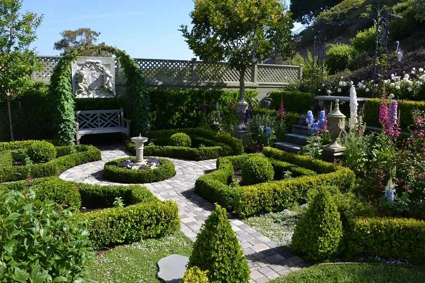 При обустройстве собственного участка в смешанном стиле дизайнеры рекомендуют комбинировать несколько схожих между собой направлений.