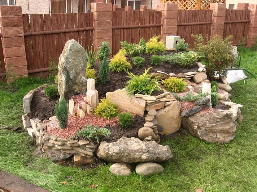 Каменистые горки — наиболее распространенный в нашей местности вид альпинария. Это небольшая земляная насыпь, по которой разложены камни. Камни — слоистые или валуны, пространство между ними заполняют щебнем, окатышами, галькой или валунами меньшего размера. Это и будет каменистая горка.