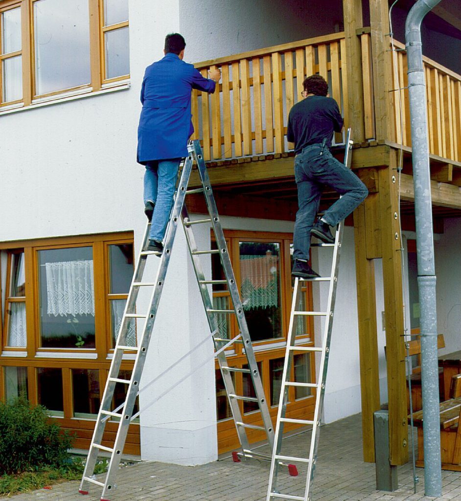 Стремянка должна иметь допустимую высоту в 5 метров, после работы её легко сложить. Она оборудована двумя парами направляющих, удерживающих её в рабочем положении. Более популярными считаются лестницы из двух, трёх секций. Они имеют выдвижные секции и позволяют работать на высоте до 10 метров. Трёхсекционные конструкции могут использоваться в качестве приставной лестницы благодаря выдвижной секции.
