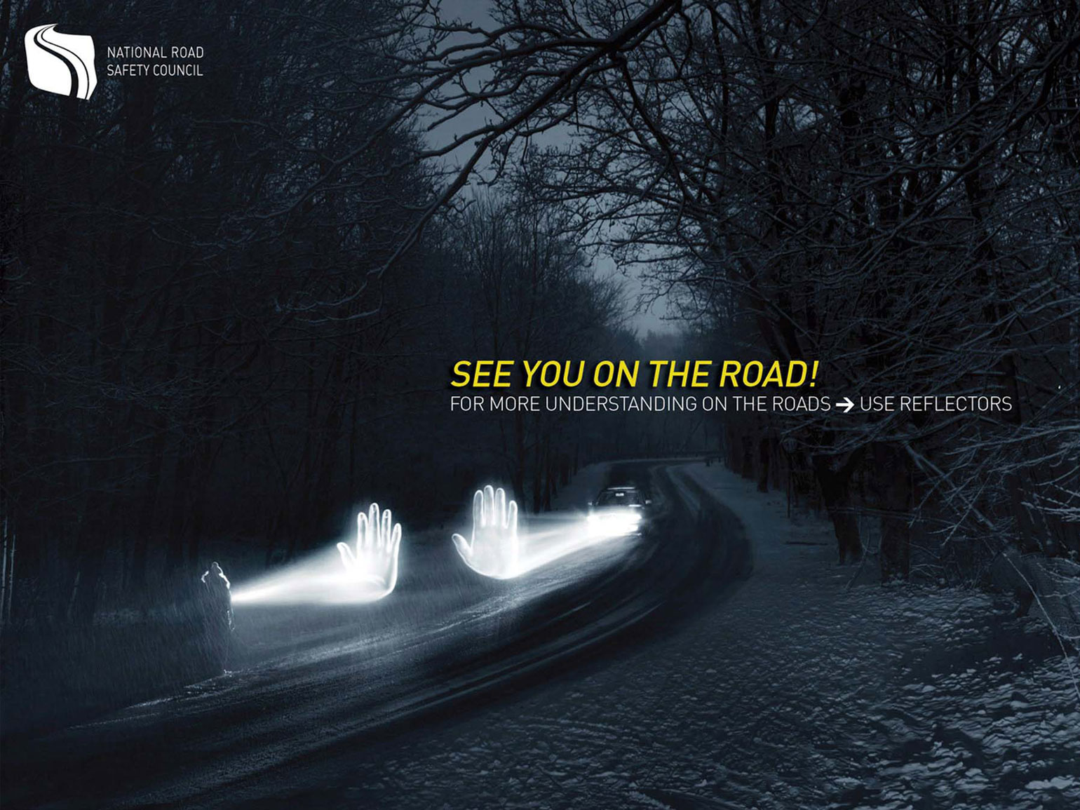 На этом рекламном постере Национального совета по безопасности дорожного движения первое, что видит зритель — руки-прожекторы, и только потом он замечает пейзаж и фигурку человекаИзображение: San Markos