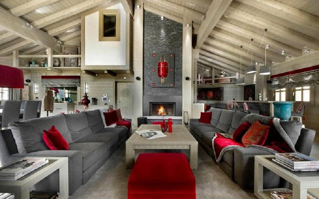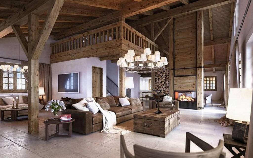 В интерьерах используются простые геометрические формы, без сложных асимметричных конструкций и витиеватых элементов. Стилистика шале скорее напоминает смесь деревенского и классического стилей. В гостиной обязательно устанавливают камин, желательно – большой и настоящий.