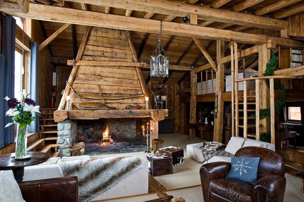 Уютная комбинация стилей шале и кантри в оформлении гостинойИсточник paydaydcr.com