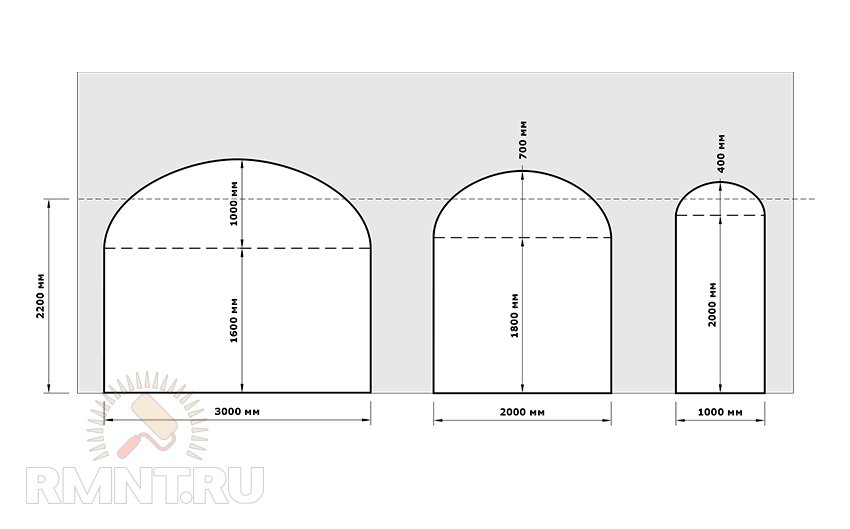 Чем шире проём, в котором формируют арку, тем больше потребуется радиус изгиба, чтобы форма арки была соразмерная