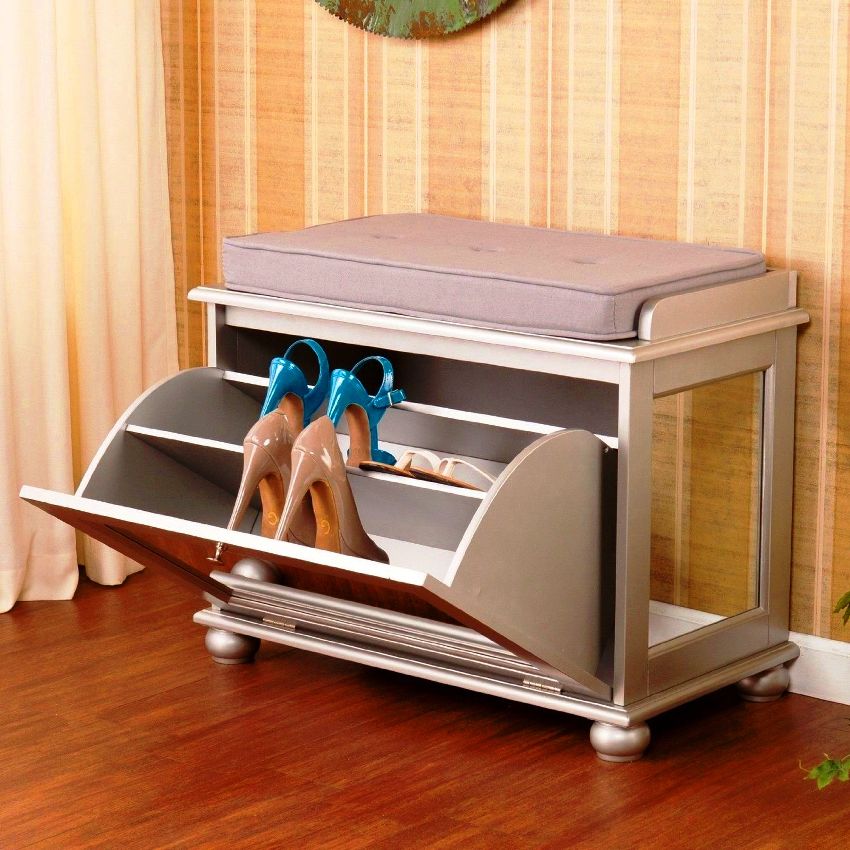 Упрощенный вариант хранения: банкетка в прихожую с сиденьем и полкой для обуви