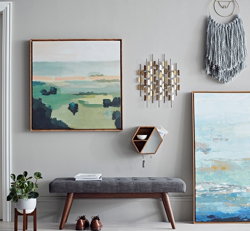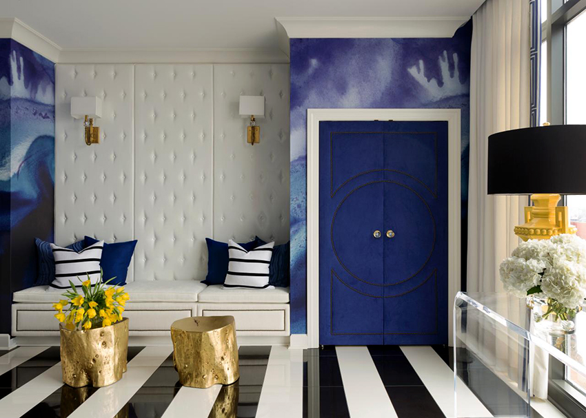 Тренд можно назвать настоящим хитом, в эффектности ему не откажешь. Вот только он может быть немного непрактичным в быту, все-таки из-за близости к входной двери все изгибы придется протирать довольно часто