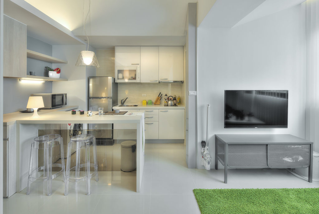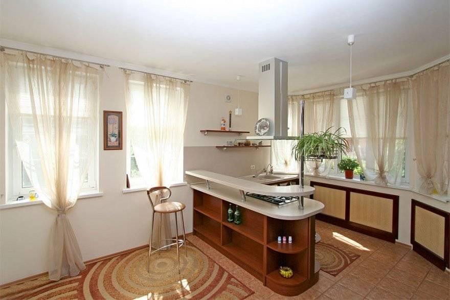 Барная стойка является замечательным атрибутом любого интерьера, одинаково подходит как для большой, так и для маленькой кухни. В просторных помещениях выполняет свою естественную функцию – подставку для бокалов и напитков. В узких и небольших помещениях она берет на себя роль обеденного стола и дополнительного рабочего пространства. В современных кухнях в барную стойку встраивают шкаф и полки, чем создают дополнительные места для хранения.