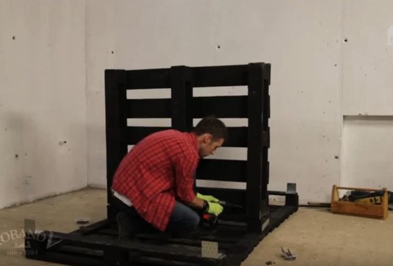 Соединяем два паллета для столешницы и три для ножек. Уголками скрепляем детали.