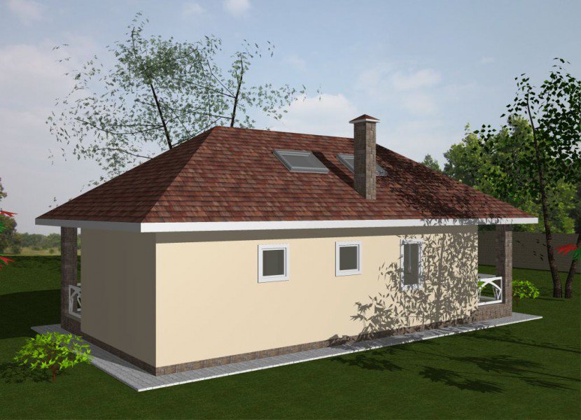 Крыша у кирпичной бани обычно двухскатная или вальмовая, но может быть и односкатная, с покрытием из битумной или металлической черепицы (о строительстве крыши для бани узнайте из нашей статьи).