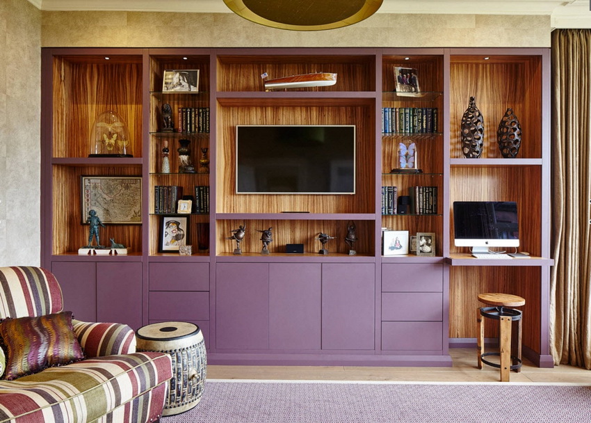 Наличие стенки в гостиной делает ее уютнее и подчеркивает стиль интерьера