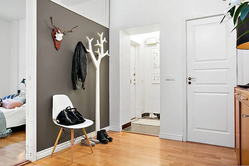 Вариант для малогабаритных помещений, которые светлая гамма визуально увеличивает. Наибольший эффект дает сочетание белой двери в прихожей и светлого пола.