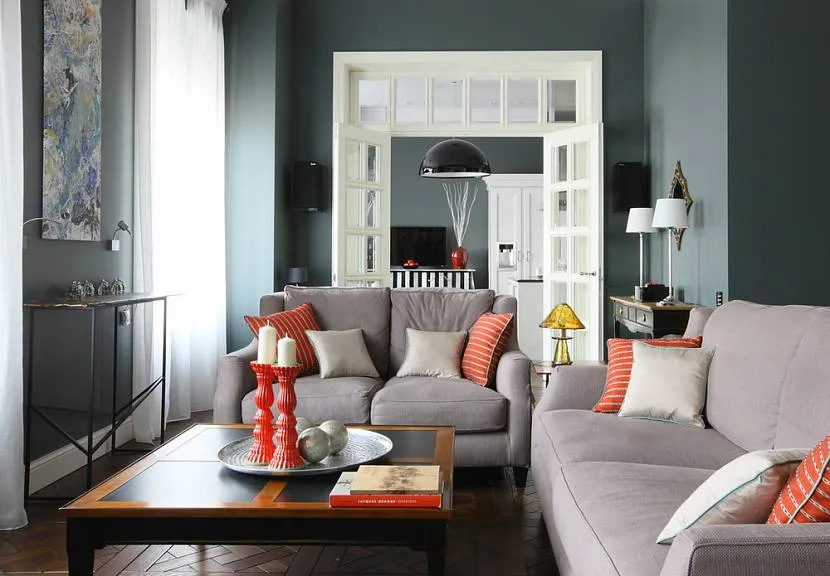 Насыщенные цвета. Белый великолепно дополняет контрастные (черный, шоколадный, синий) и более легкие цвета. Бело-голубая гамма — классика средиземноморского стиля. Привлекательный вид имеют современные интерьеры в приглушенных тонах: сочетание оливковых, фиолетовых, серых стен и белых дверей смотрится небанально и свежо.