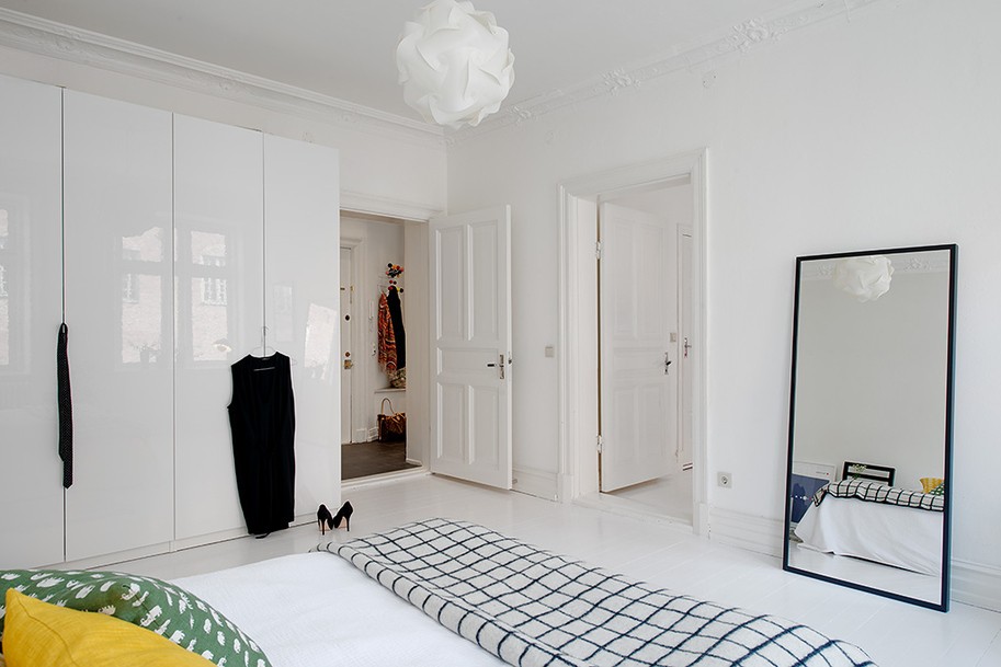 Все еще думаете, что белые двери и темные стены не сочетаются? Надеемся, следующий пример развеет все ваши сомнения! Для уютного интерьера в стиле модерн светлая дверь будет актуальна всегда, особенно, если стены выкрашены в контрастные сочетания