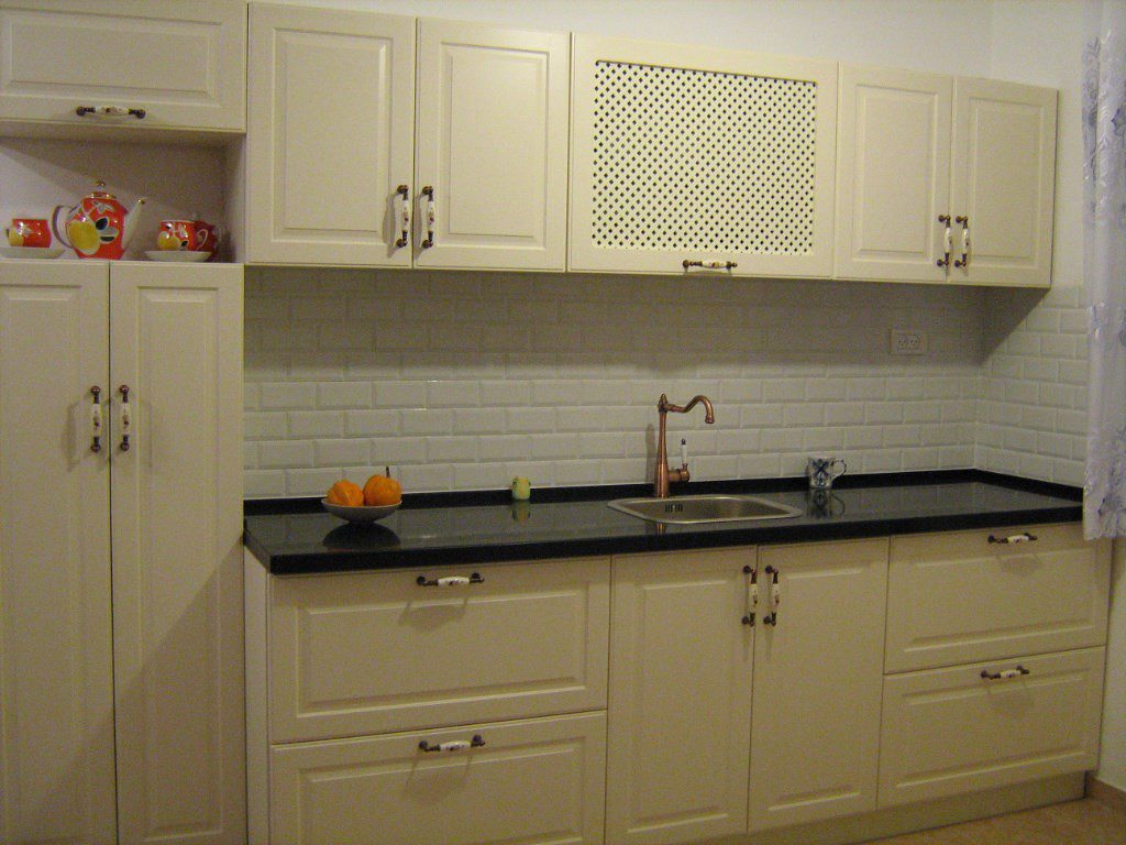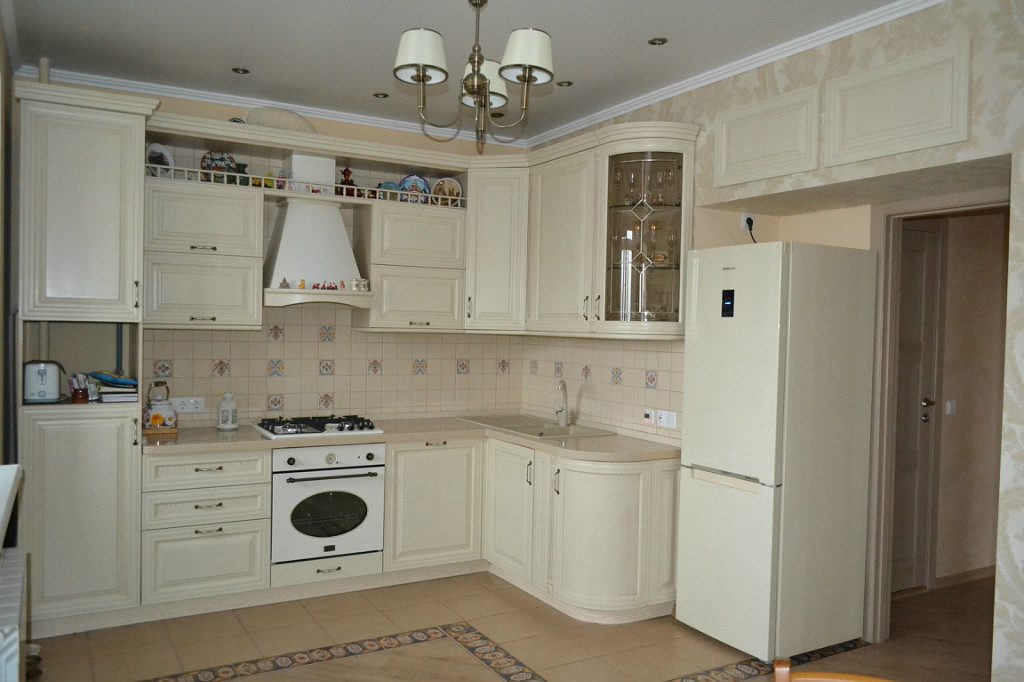 Причем в такую мебель со стандартной сдержанной формой не составит труда вписать даже новейшую плиту, печь или микроволновку.