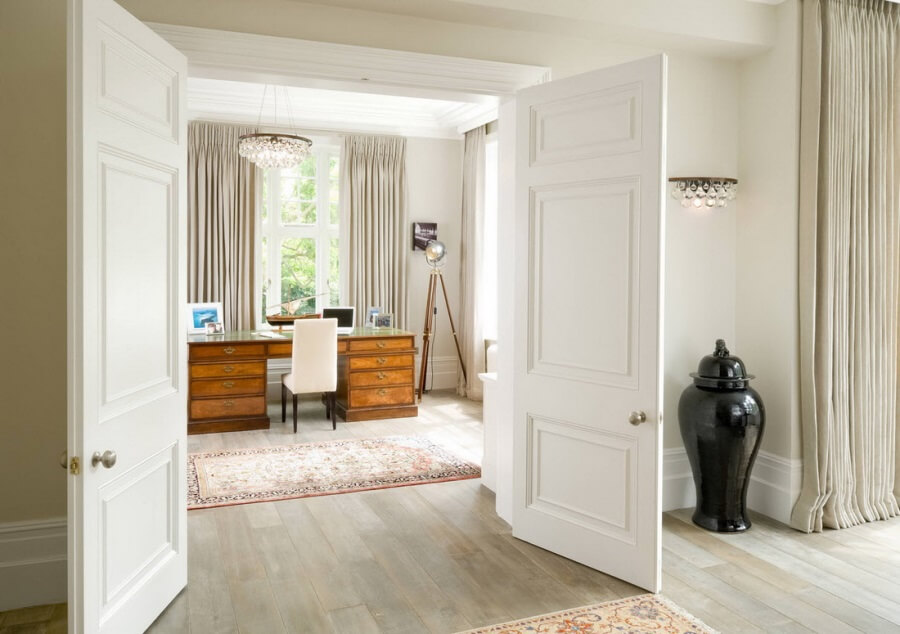 Двери белого цвета популярны среди разнообразных классических стилей