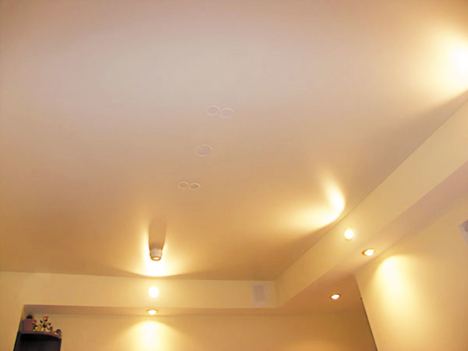 В каких ситуациях возникает необходимость спайки двух и больше полотен? Есть варианты, когда состыковываются разноцветные и разнофактурные полотна для создания оригинального дизайна и имитации двухуровневого потолка.