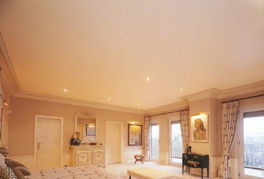 Дизайн натяжного потолка в спальне