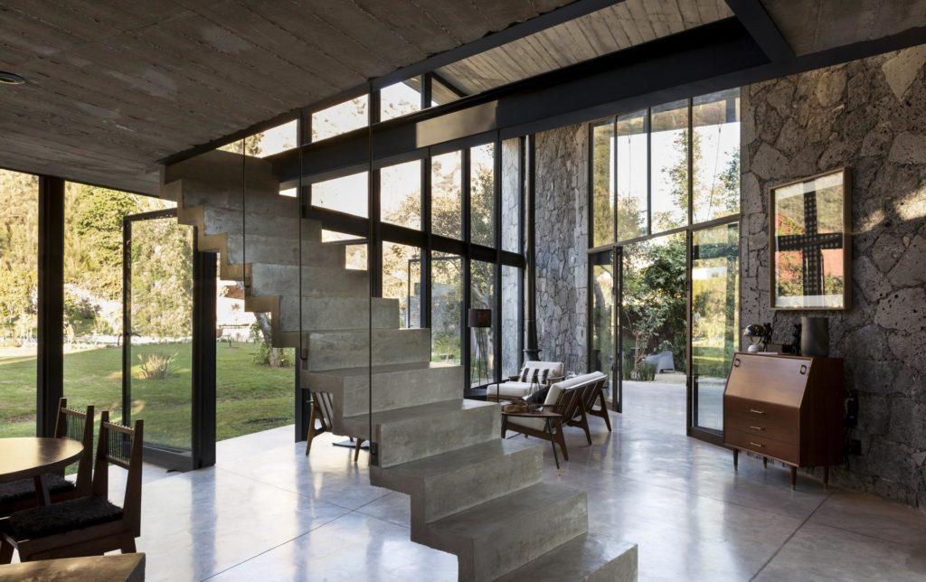 Пластичность бетона позволяет создавать лестничные пролеты сложных изгибов с интересными формами ступеней