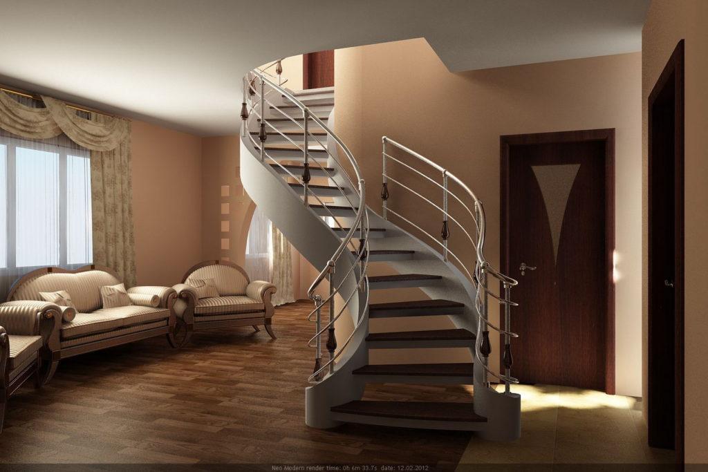 - будет ли уместна прямая или поворотная лестница в существующем проеме — позволяют ли это сделать габариты помещения, не будет ли она преграждать входы-выходы (может, лучше отдать предпочтение компактной винтовой конструкции, либо выбрать более объемный закругленный вариант);
