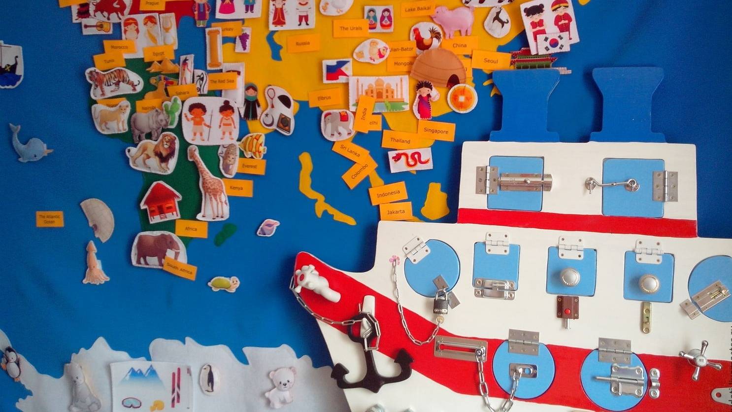 Методика Монтессори предполагает использование подобной доски с возраста 2-3 лет. Но со времени, как они впервые появились, прошло почти более 100 лет, и бизиборды значительно изменились.