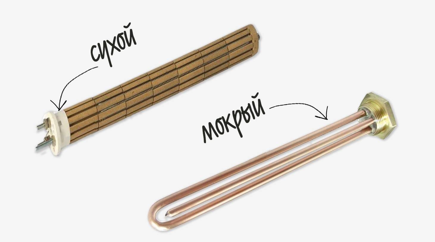 Погружной трубчатый электронагреватель (ТЭН) называют еще «мокрым», работающим по принципу кипятильника: медная трубка расположена в резервуаре под водой. Недостаток – образование накипи.