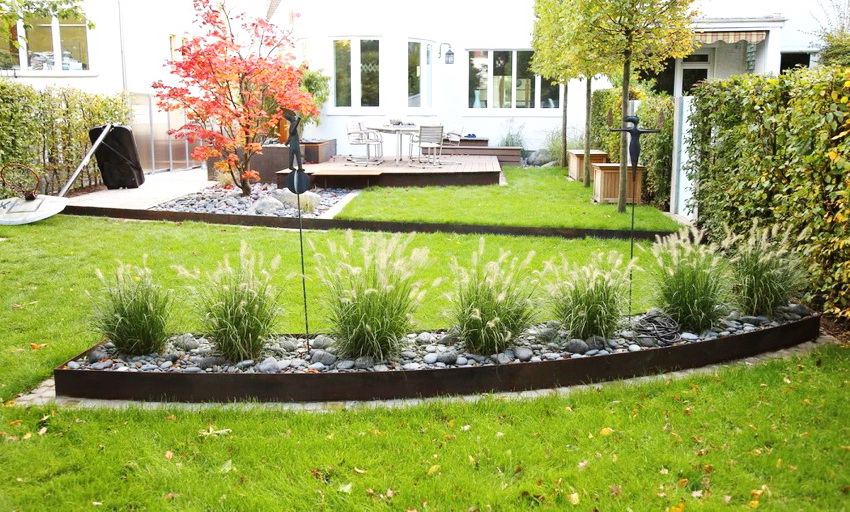 На заметку! В магазинах можно купить готовые ландшафтные конструкции, состоящие из нескольких уровней, сделанные из оцинкованного металла.
