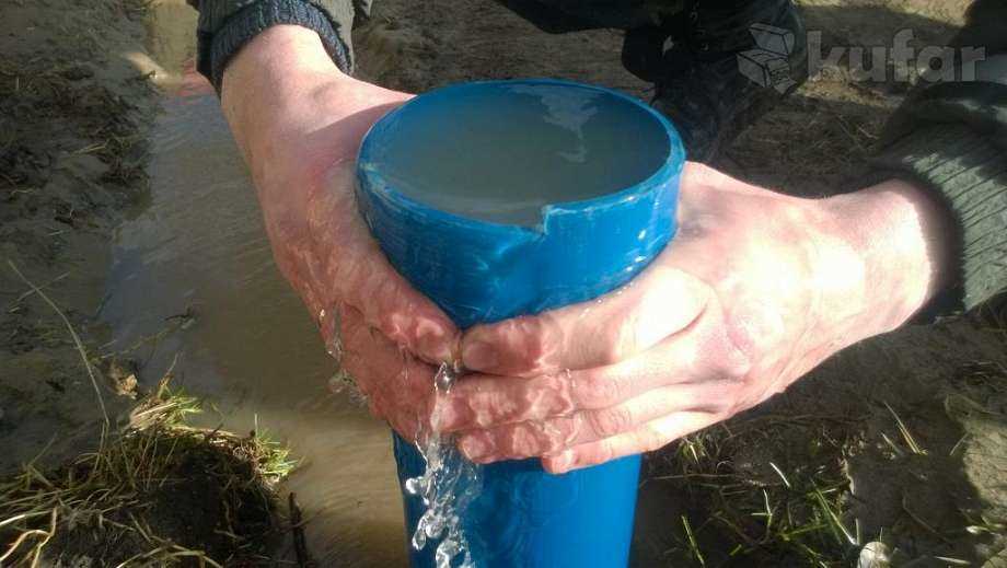 - Трубу необходимо прослушивать на звуки. Для этого в трубу периодически заливают воду, поворачивая ее по часовой стрелке каждые 50 см. Воду нужно заливать при появлении шума. Если она исчезнет быстро, то пройти придется всего лишь 30 см, медленно – то трубу нужно провернуть еще на полметра. Скрежет в трубе говорит о крупно фракционном песке, шелест – о мелкофракционном. Звука не будет, если бур находится в глинистом грунте.