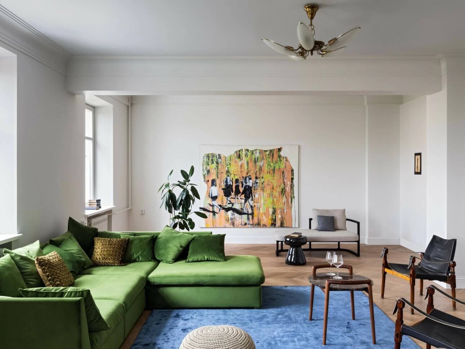 Светлая просторная гостиная в московской «сталинке», дизайнер Марина Меренкова