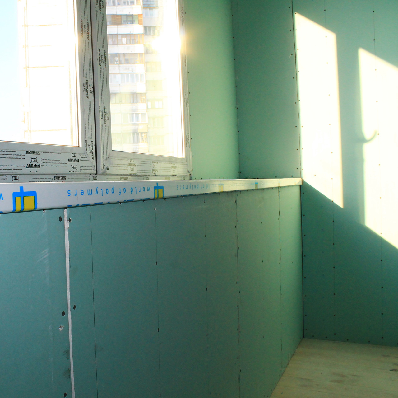 Балкон обшитый гипсокартоном, готовый для дальнейшей отделки