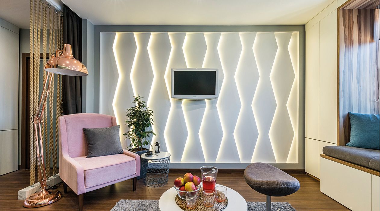Декоративные панели с волнистой поверхностью хорошо смотрятся в интерьере, выполненном в стиле модерн или хай-тек