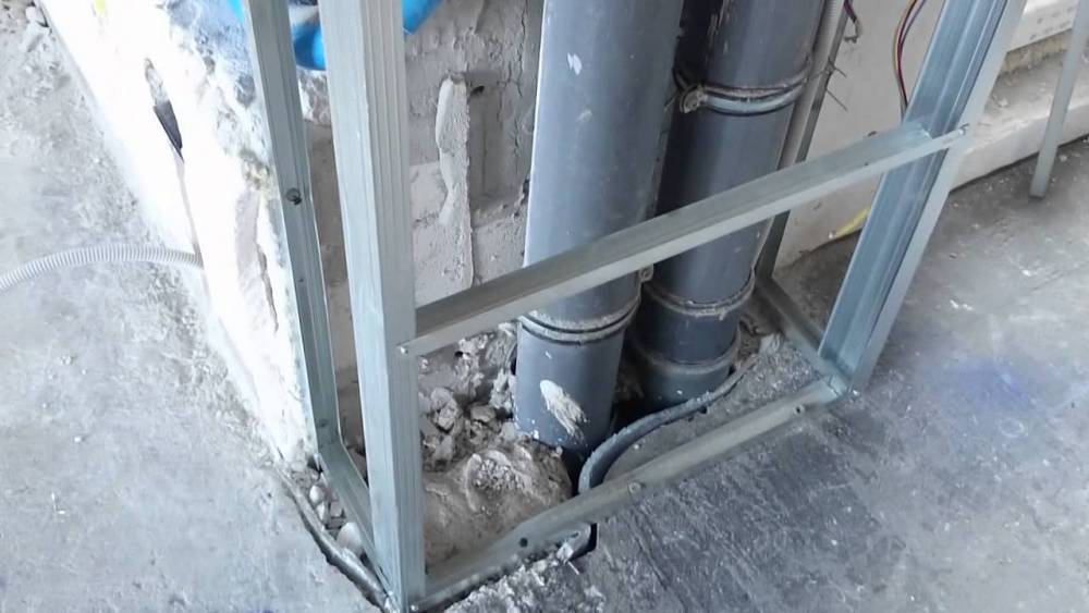 Края раскроенных листов гипрока (гипсокартона) обрабатывают рубанком и потом прикручивают элементы к каркасу. Места стыков заделываются шпатлевкой. Выпиливаются специальные окошки напротив тех мест, где находятся краны.