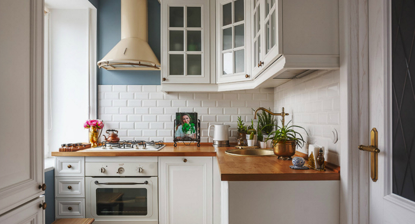 Гармоничное сочетание старой доски и металла в интерьере кухни