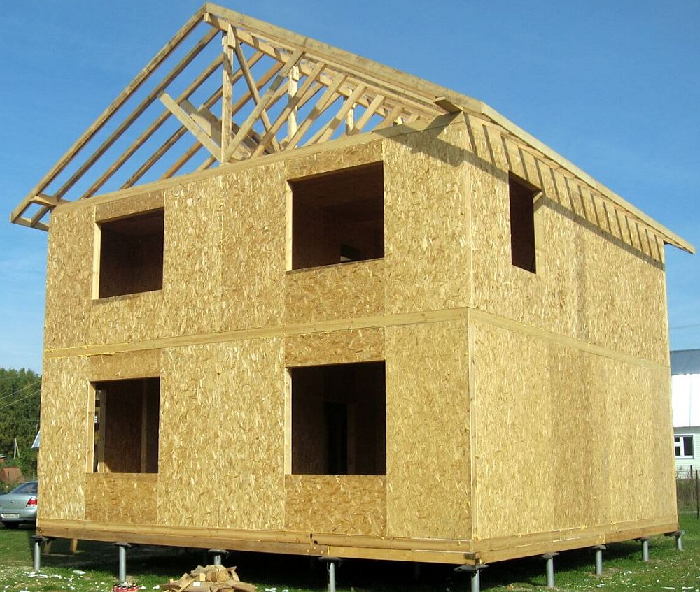 ОСБ-плиты – бюджетная технология. Материал целесообразно использовать при сооружении дачных домов и небольших построек.