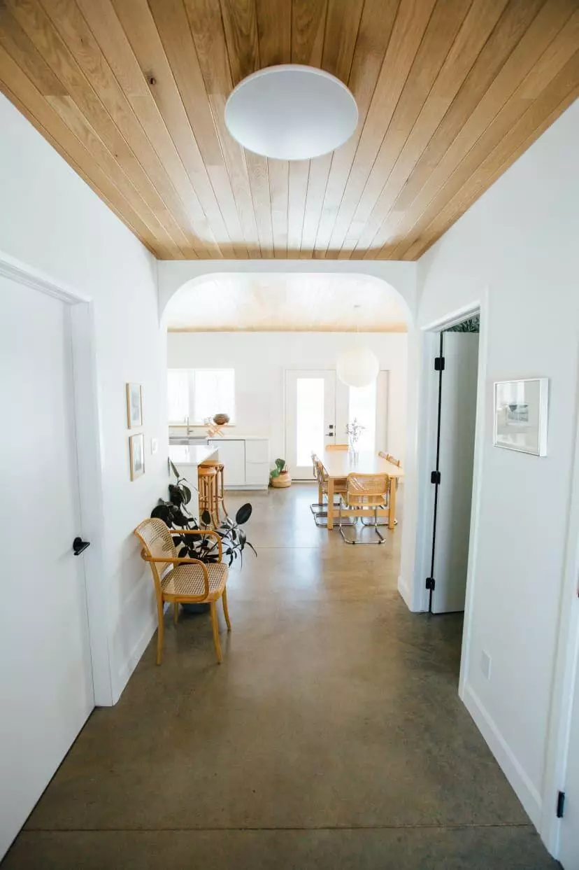 Пестрые, яркие и вычурные узоры на стенах не соответствуют стилю джапанди: это необходимо учитывать при выборе настенного покрытия. Уместнее выкрасить стены в спокойные тона или использовать натуральные деревянные панели, выигрышно смотрящиеся в современном интерьере. Грубая штукатурка тоже отлично подойдет.