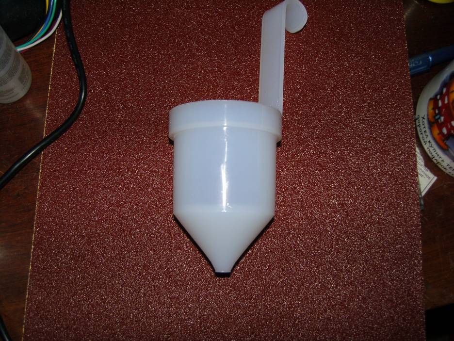 Для определения вязкости состава, используется простой прибор – вискозиметр. Это небольшой сосуд в виде черпака, емкостью 100 мл. Он имеет узкий и длинный носик, диаметром 40 мм. Сквозь этот носик и стекает краска или раствор. Так можно понять вязкость состава. На фото видно, как выглядит прибор.