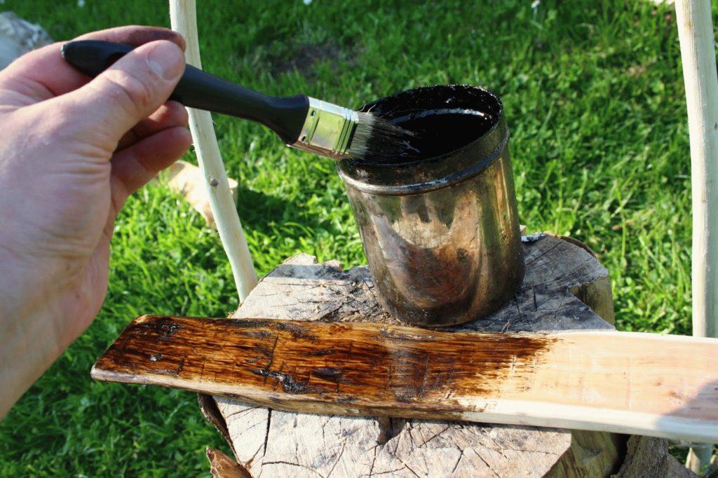 В старину для защиты древесины от гниения и насекомых активно использовали древесный деготь. Чаще применяли березовый, реже сосновый. Деготь делали на основе сока деревьев, получался состав с сильным запахом.