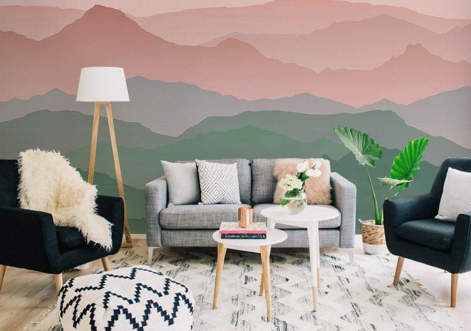 В таком стиле стену можно окрасить, соединив сразу несколько цветов, сочетающихся между собой.