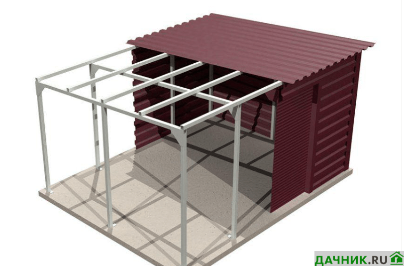 Для конструкции каркасного вида можно применить профилированный лист, поликарбонат в качестве стен.