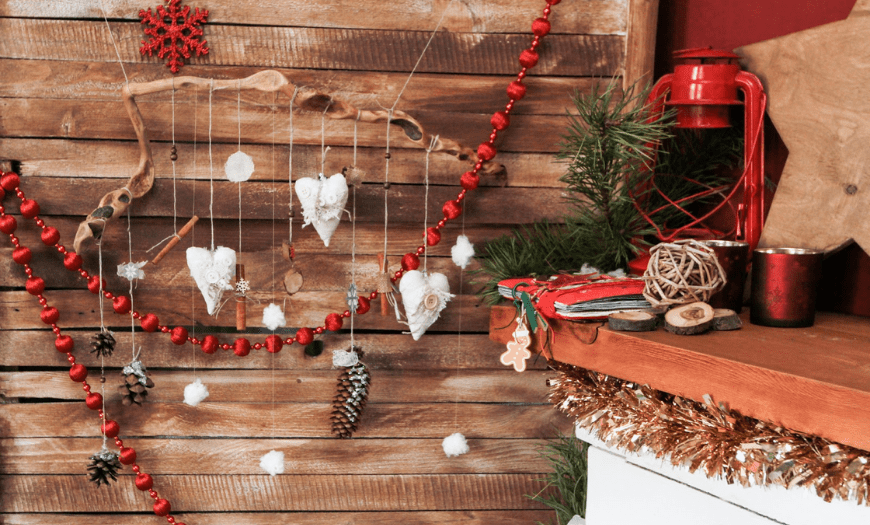 Яркие подарочные коробки, подвешенные на веревке, силуэты и фигурки, домики, миниатюрные елки или украшения в виде сердца добавляют уникальные акценты в новогодние гирлянды.