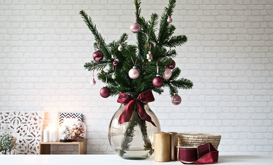 - вместо елки можете составить хвойный букет, например, хвойные ветки с ягодами, шишками, палочками корицы, дольками цитрусовых.