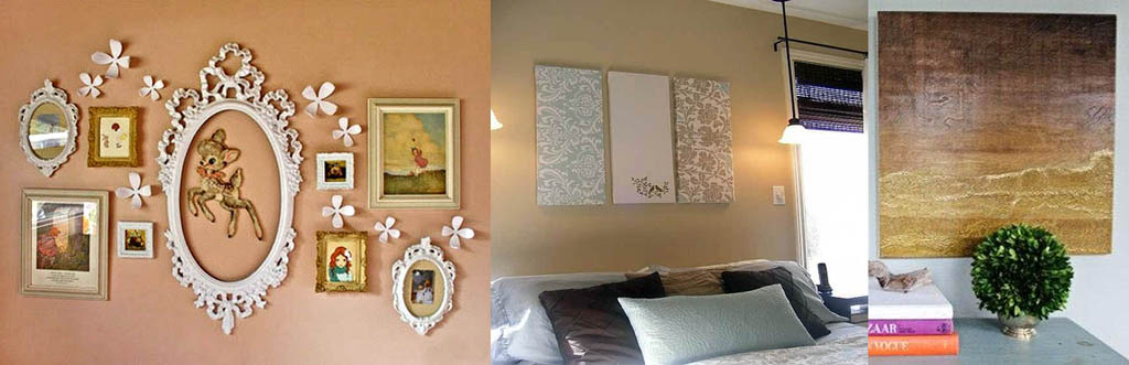 - Навесные панно из остатков обоев, ткани, декоративной пленки и т.п.
