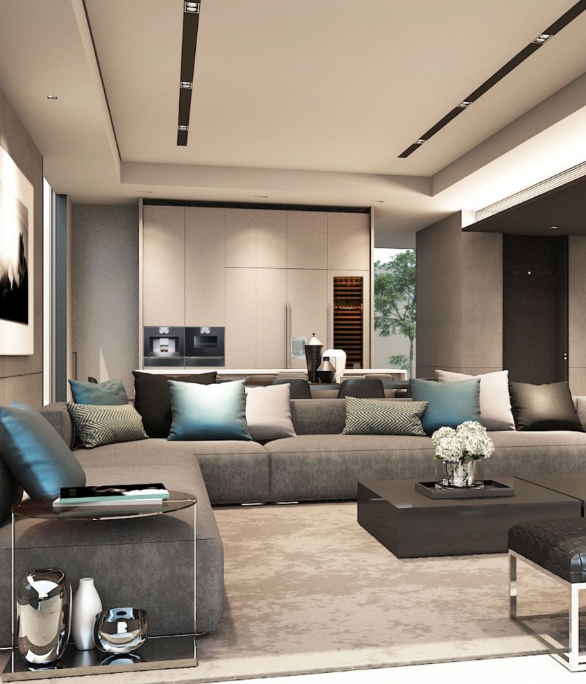 Современный зал отличается лаконичными фактурами и неброскими принтами на мебели, светлыми оттенками материалов, общей легкостью восприятия.