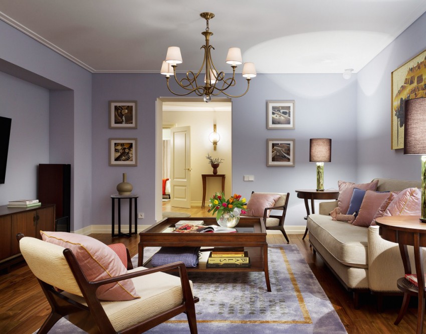 Бежевый цвет стен гостинойНежно – лиловые стеныСтены в бело-пепельном решении