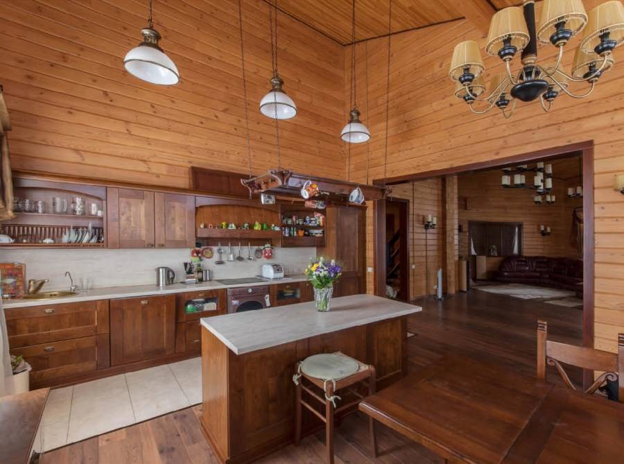 Отделка массивом дерева — дорогой, но очень приятный вариант на глаз и на ощупь