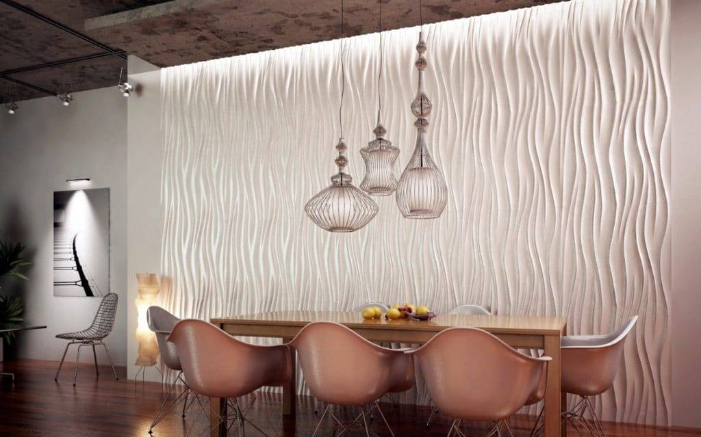 Панели имеют вид прямоугольных полотен разного размера, благодаря чему можно подобрать необходимый размер для любого вида отделки. Полотна могут быть фактурными, иметь рисунки или выпуклости, за ними легко скрываются кабеля и проводка.