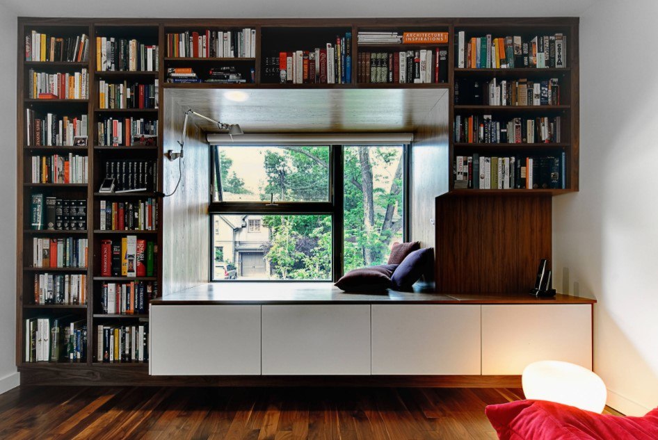 Если же ниша создаётся для размещения домашней библиотеки, книг и журналов, то выбирать необходимо более практичные материалы для отделки, не собирающие пыль и легко поддающиеся очищению.