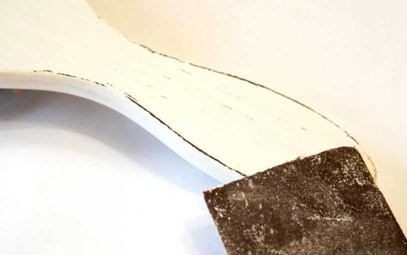 - грубой шкуркой делаем сколы белой краски до коричневой;
