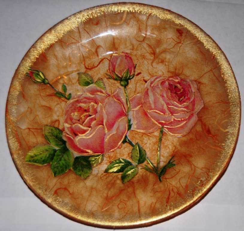 Первый опыт многих мастериц начинался с обычной — белой, плоской, керамической тарелки! Этот базовый опыт поможет понять, стоит ли двигаться дальше или наоборот, покажет, что декупаж — не Ваша тема.