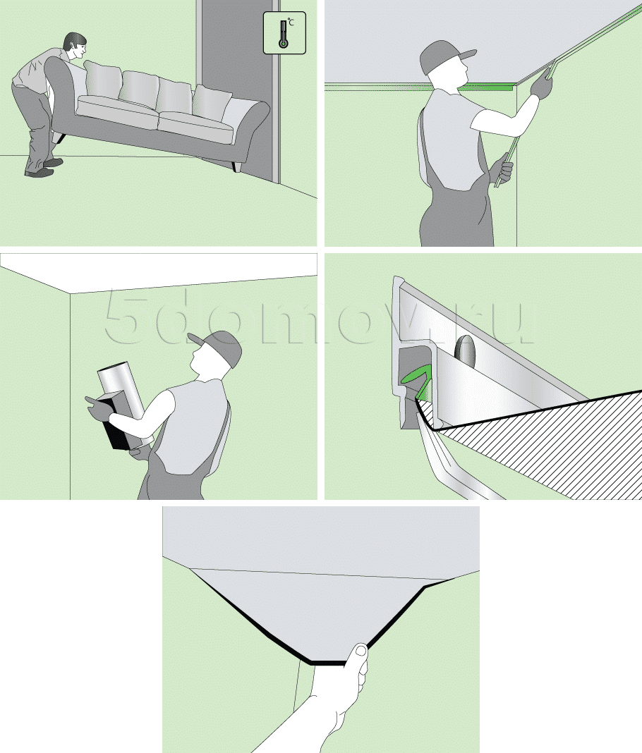 Особенности работы мастера, технология снятия и установи натяжного потолка